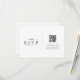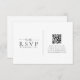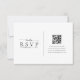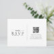 This RSVP card has a clean, modern design with a simple two-column layout. One side features elegant serif and script fonts, while the other side includes a QR code with minimal lowercase text. The use of black and white, along with plenty of white space, gives it a stylish, minimalist look that feels both formal and contemporary.