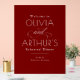 This romantic burgundy red acrylic rehearsal dinner welcome sign radiates luxury and sophistication, making it a perfect statement piece for your wedding. Its glossy finish adds a sleek, modern touch to your ceremony and reception spaces, seamlessly complementing a wide range of wedding themes and styles. The minimalist text, paired with elegant calligraphy for the word "and," gracefully connects the couple's names, adding a romantic and stylish detail that elevates the overall ambiance of your special day. This stunning sign not only enhances your décor but also sets the tone for a night filled with love and celebration.