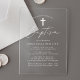 Celebrate your child’s special day with our Modern Minimalist Script baptism invitations, featuring a casual white calligraphy script on a frosted or transparent acrylic background. These elegant and modern baptism invitations are perfect for a sophisticated baby baptism celebration. Personalize with your child's name and baptism details for a timeless keepsake that beautifully honours this meaningful occasion.