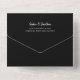 These elegant, minimalist all-in-one wedding invitations feature white modern script typography and clean, sans serif text for a simple and stylish black design you will love. Detachable RSVP response card is attached.