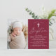 The simple baptism invitations feature a casual white calligraphy script with a burgundy background for a design that is perfect for a modern baby baptism. Personalize the elegant baptism invitations with your child's photo, name, and religious event details below. The back of the photo baptism invitation provides space for additional text and photos. The gender-neutral design is perfect for both girls and boys.