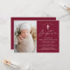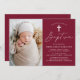 Modern Minimalist Script Burgundy Photo Baptism Invitation