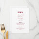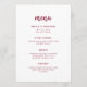 This elegant, minimalist wedding menu card features modern burgundy script typography and clean, sans serif text for a simple and stylish design you will love.