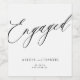 Simple engaged calligraphy script minimal design black and white engagement party personalized favour wine bottle labels.