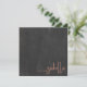 This chic note card features your name in a handwritten caramel script calligraphy "a note from" on a distressed grey black chalkboard effect background. For an edgy modern effect. The typography is stylishly placed in the lower right corner. The back of the note card is white.