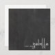 This chic note card features your name in a handwritten white script calligraphy "a note from" on a distressed grey black chalkboard effect background. For an edgy modern effect. The typography is stylishly placed in the lower right corner. The back of the note card is white.