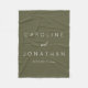 This personalized fleece blanket features a soft olive green design with clean white typography for a calm, modern look. Customize it with names and a wedding date to create a meaningful keepsake couples can enjoy every day. Perfect for cozy nights at home, sofa styling, or as a thoughtful wedding, engagement, or anniversary gift. A timeless piece for couples who love understated design with personal significance.