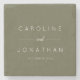 These personalized stone coasters feature a soft olive green background with clean white typography for a modern, understated look. Customize with the couple’s names and wedding date to create a meaningful detail for coffee tables, bar carts, or reception décor. A thoughtful choice for wedding favors, engagement gifts, or everyday home use after the celebration. Ideal for couples who love timeless design with a natural, refined feel.