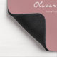 Modern Minimalist Mouse Pad with Personalized Name in Script. It can be customized with job title, custom text, etc. Muted light pink-red background with white text.