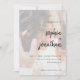 These elegant, minimalist wedding invitations feature modern script typography and clean, sans serif text as an overlay on your favorite personal photo, for a simple and stylish design you will love.