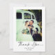 This is a modern and minimalist photo wedding thank you card with a handwritten script, paired with a typewriter font.