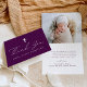 Modern Minimalist Script Purple Photo Baptism Thank You Card