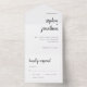 These elegant, minimalist all-in-one wedding invitations feature modern script typography and clean, sans serif text for a simple and stylish black and white design you will love. Detachable RSVP response card is attached.