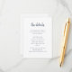 These elegant, minimalist wedding guest information cards feature dark, navy blue modern script typography and clean, sans serif text on white for a simple and stylish design you will love. You can use these cards for driving directions, reception or transportation information, hotel or accommodations information, and any other wedding details you need your guests to know.