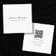 Modern Minimalist Signature Script QR Code White Square Business Card