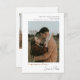 This sleek and modern design features a portrait photo centrally placed, drawing all the attention to your special moment. Surrounding the image is modern clean and simple, minimal typography, allowing space for your own message, the event date, and location. The handwritten script style is easy to read for the couple’s names adds a personal and romantic touch.