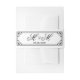 This customizable wedding invitation belly band features a black ornate frame on a white background. Just add your details to give it a custom feel and voila!