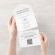 This design features a modern simple minimalist QR code, a website online rsvp response, minimal guest response via website, black and white typography script, trendy stylish calligraphy ampersand, budget-friendly invitation template, wedding details web address, with scannable QR code response, response via website code, simple rsvp invitation template