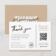 This warm and personal thank you card is designed to express your gratitude to customers in a unique and engaging way. The card features a handwritten "Thank You" with a touch of heart, along with a QR code that links to your online shop for easy access to future purchases. It also includes a discount code, contact information, social media links, and a call to action to leave a review. The soft, earthy colour palette creates a warm and inviting aesthetic, making it a perfect fit for any small business looking to connect with their customers on a personal level.