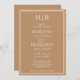 Modern boho tan beige lined border minimalist wedding invitations templates with initials at the top for you to customize.