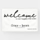 Welcome to our happily ever after. welcome banner sign, part of the Handwritten Simple Minimalist Typography collection - wedding welcome banner Personalized decor for your wedding day from Ricaso .. add your own details to this stunning banner. A bold black and white design that will welcome your wedding gusts to your wedding or reception.
