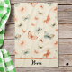 This personalized blush pink kitchen towel features a modern, minimalist watercolor butterfly pattern.