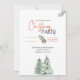 Invite guests to a celebration of warmth, elegance, and seasonal charm with this modern watercolor Christmas party invitation, featuring a soft white background and a trio of hand-painted pine trees at the base. A delicate illustration of pine leaves and berries crowns the top, framing the event details in a mix of elegant handwritten script and classic serif fonts, with festive red accents that highlight key information.