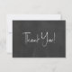 This chic ultra modern style wedding note card features your name in a handwritten white script calligraphy on a distressed grey black chalkboard effect background. For an edgy modern effect. The back of the card is white. You may type in your own message in the text template, OR delete the template and simply handwrite your own message on the back. Simple minimalist design. You can also customize this card as a thank you for yourself only, by adding your name on the back.