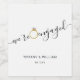 Simple modern "we're engaged" engagement wine bottle labels featuring hand-painted watercolor gold wedding ring.