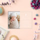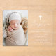 The simple baptism invitations feature a casual white calligraphy script with a transparent acrylic background for a design that is perfect for a modern baby baptism. Personalize the elegant acrylic baptism invitations with your child's photo, name, and religious event details below. The gender-neutral design is perfect for both girls and boys.