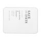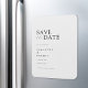 Modern wedding save the date magnet featuring minimalist typography in black and white colour.