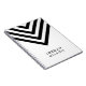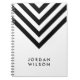 Modern minimalist white notebook featuring a black chevron pattern that you can personalize with your name. Great for school or office.