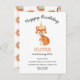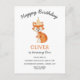 A cute whimsical woodland fox Neutral gender first birthday invitation featuring your child's name and age.