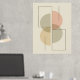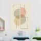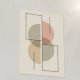 Simple, minimalistic geometric shapes, modern composition with soft pastel tones shapes on a light cream background.