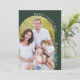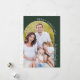 This photo Christmas card presents a modern minimalist design that features a Boho arched photo. The design incorporates a curved line of white text which gracefully follows the edge of the picture. To add a touch of elegance, the design is adorned with beautiful handwritten script. This combination of a sleek layout and delicate script creates a sophisticated and stylish holiday greeting with a rich dark green background and white text.
