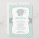 Modern Mint and Grey Elephant Baby Shower Invitation