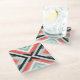Glass coaster with mint & coral geometric pattern.