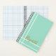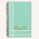 This custom name spiral notebook has a mint green cover and a customizable name in gold to personalize. Available in multiple sizes, the interior pages can be customized with your choice of page design for journalling or note taking.