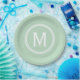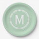Modern Mint Green Custom Round Framed Monogram Paper Plate