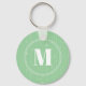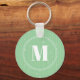 Modern mint green stripes pattern round monogram keychain