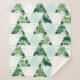 Modern sherpa blanket design featuring mint green and tropical leaves triangles pattern.