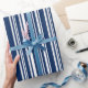 Modern Mixed Indigo and White Stripes Wrapping Paper