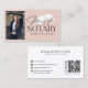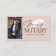 Modern, elegant Mobile Notary photo business card. Design features single photo, typography script ''mobile notary'' and a name on the front. Personalize further with your contact details, social media and qr code on the back.