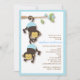 Two adorable little baby monkeys in blue diapers hanging from a flowering branch make this a sweet baby shower invitation for when you know there's two little boys on the way.