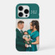 Modern Monogram Photo Teal Green iPhone Case