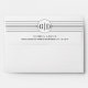 The sophisticated wedding envelope features a contemporary monogram and black and white stripes. The back flap is adorned with horizontal stripes, adding a touch of modern elegance to the design. At the centre of the stripes, there is a circle that contains your initials, surrounded by two small hearts. This personalized detail adds a romantic and charming element to the overall look of the envelope. The inside of the envelope is of solid black colour.