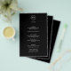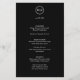 This simple yet elegant menu features a modern monogram design in black. Add your custom text using the template form. Use the advanced editing menus, accessed by choosing "customize further" at the bottom of the template, to change the colours, font and layout.