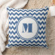 Modern Monogram Blue Chevron Pattern Throw Pillow