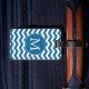 These trendy and modern monogram luggage tags feature a stylish blue and white chevron zigzag stripe pattern and the letter or initial of your choice.