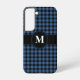 Modern Monogram Blue Plaid Pattern Samsung Galaxy S22 Case.